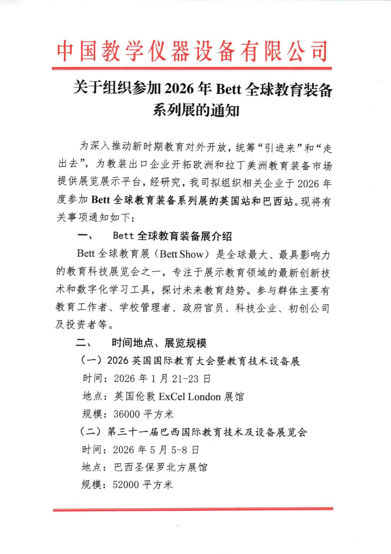 关于转发参加“2026年Bett全球教育装备系列展”的组团通知