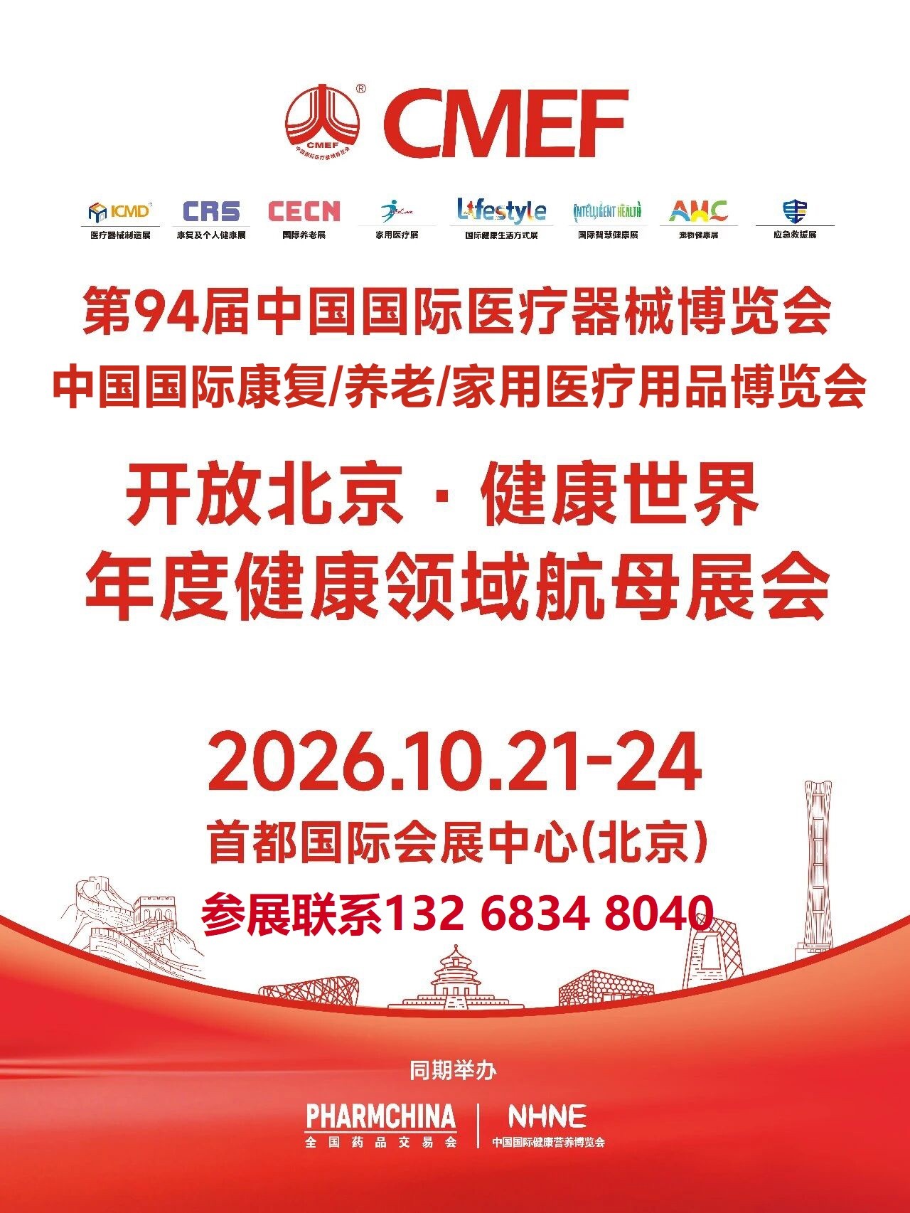 2026年10月21-24日北京·首都国际会展中心与全球医疗健康同仁共赴科技与人文交织的盛宴立即行动,抢占先机,参展联系:许女士132 6834 8040